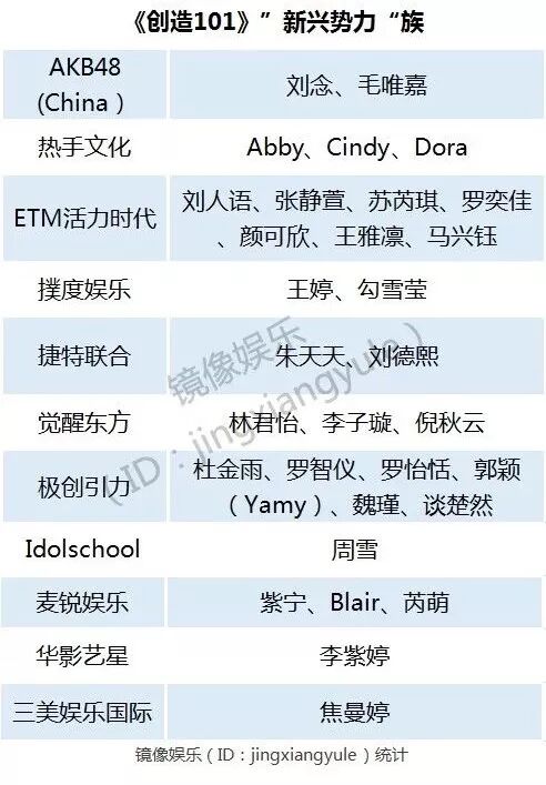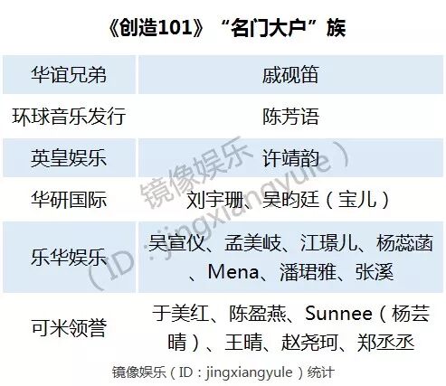 巨头入局,自带光环。在《创造101》的参赛者背后,有不少“名门大户”。