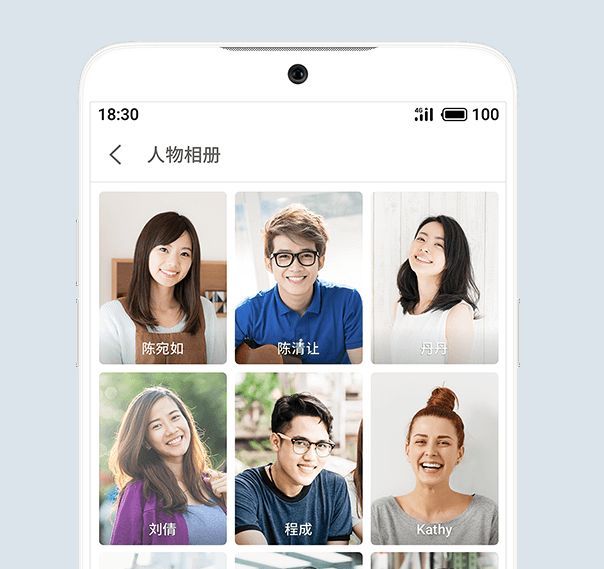 Flyme与优图合作,带来了具有超强人脸识别能力的“人物相册”,它可以自动识别侧脸、远景、妆后照、人脸贴纸照片等等各色复杂场景人物照片,进行准确分类,避免遗漏和重复情况的发生,方便用户整理和检索。