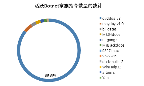 图:活跃Botnet家族指令数量统计