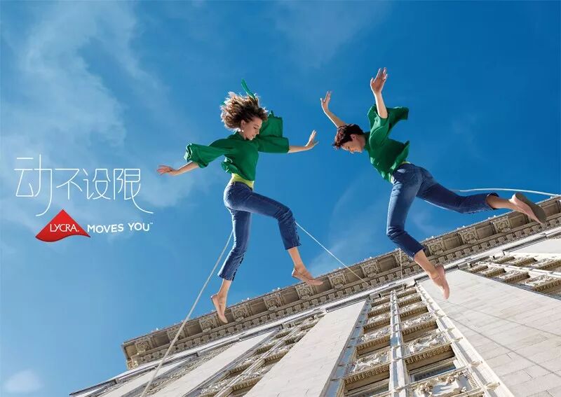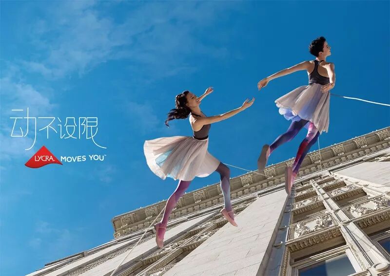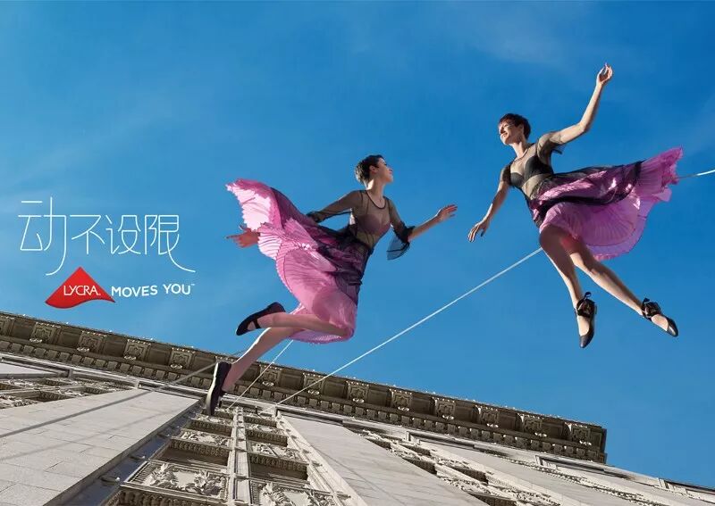 也就是说,LYCRA®(莱卡®)最新品牌广告片、平面广告和上海这场空中芭蕾秀,均由BANDALOOP的舞者出演,创意十分一致:就是通过“空中芭蕾”的舞姿,来突出LYCRA®(莱卡®)弹性纤维带给面料的特性,但这又不是普通的芭蕾或者其他舞蹈,而是“空中芭蕾”,兼具艺术性的同时,舞蹈演员选择在城市高楼的楼体表面跳舞,又极具挑战和冒险精神,进而诠释出其品牌的“活力、运动和时尚”的品牌精神。
