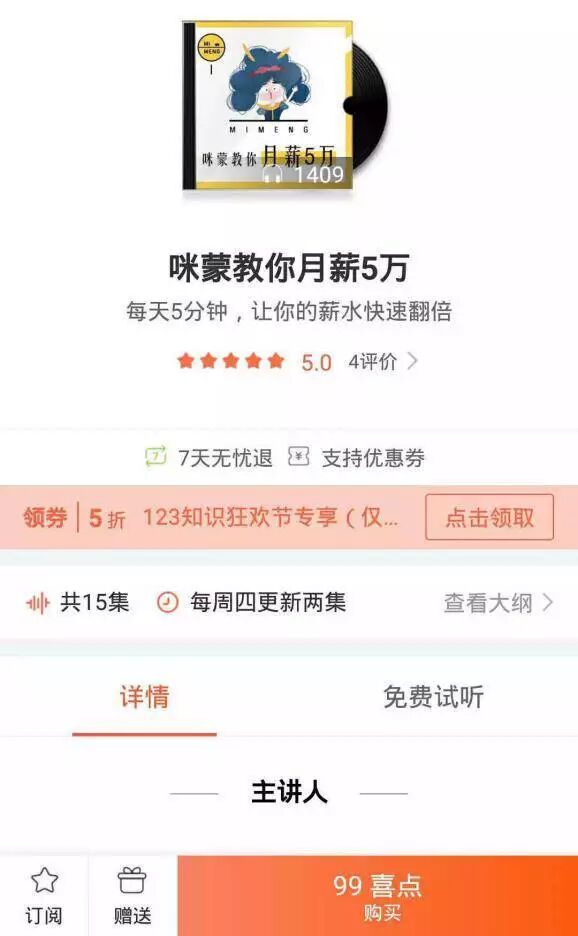 另外,咪蒙也开始尝试走向知识付费领域。去年,咪蒙开设的付费音频课程《咪蒙教你月薪五万》,一共15集,每集99元,收入累计约700万。