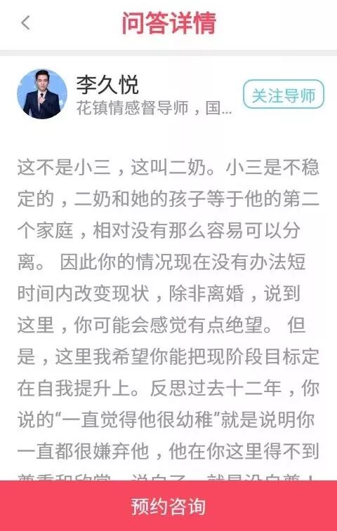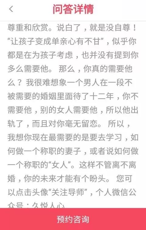 而且,一个人能否处理好情感问题,与自身心智的成熟度有关,而心智的成熟需要一个相对较长的成长过程。如果确实存在心理问题,则需要向专业的咨询机构寻求帮助,而专业的机构与Ayawawa、咪蒙这样追求利益为先,流量为王的情感营销号有着本质区别,后者恐怕只会误人子弟。