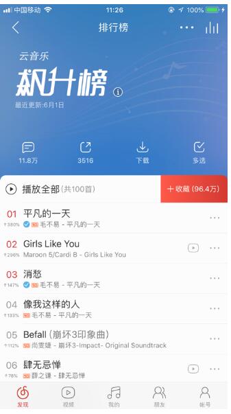 从毛不易的全新数字专辑《平凡的一天》上线网易云音乐至今的火爆效果就可窥察一二,专辑中评论总和已超越十万,并陆续登上网易云音乐各个官方榜单。截至6月11日,《平凡的一天》、《消愁》、《像我这样的人》三首歌依然在网易云音乐飙升榜前六,上线十天了热度还丝毫未减。