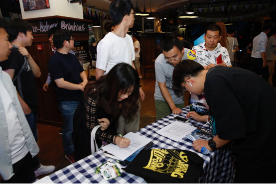 在活动现场入口,到场的车友与喜爱的球队人像合影,比拼桌上足球感受足球文化。在签到处,到场车友Pick本命球队,为其助威。
