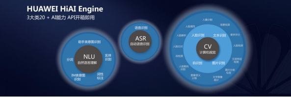 从EMUI 5.0开始,华为就下决心要把EMUI做成一个平台,通过第三方体系做创新,最终为消费者提供最佳体验。今年上半年,华为推出了HiAI引擎,具备计算机视觉(CV)引擎、自动语音识别(ASR)引擎、自然语言理解(NLU)引擎三大接口功能,可用于短视频直播类、社交平台类、AR、拍照修图类、购物类、翻译或文字处理类应用的AI功能实现。
