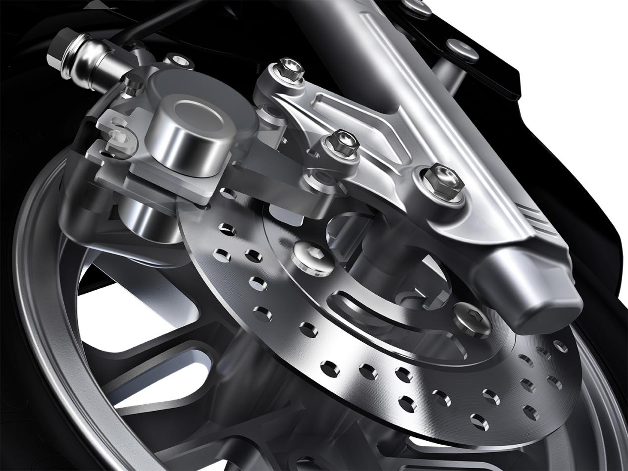 雅迪E7采用了加厚冷轧钢一体式车架,前后轴误差在±1mm以内,精度高于摩托车标准;在制动方面,与中国航空605所联合研制了超静音双泵对置缸碟刹,超静音,制动性能更高,最短刹车距离达1.2米,驾驶更安全,出行更放心。