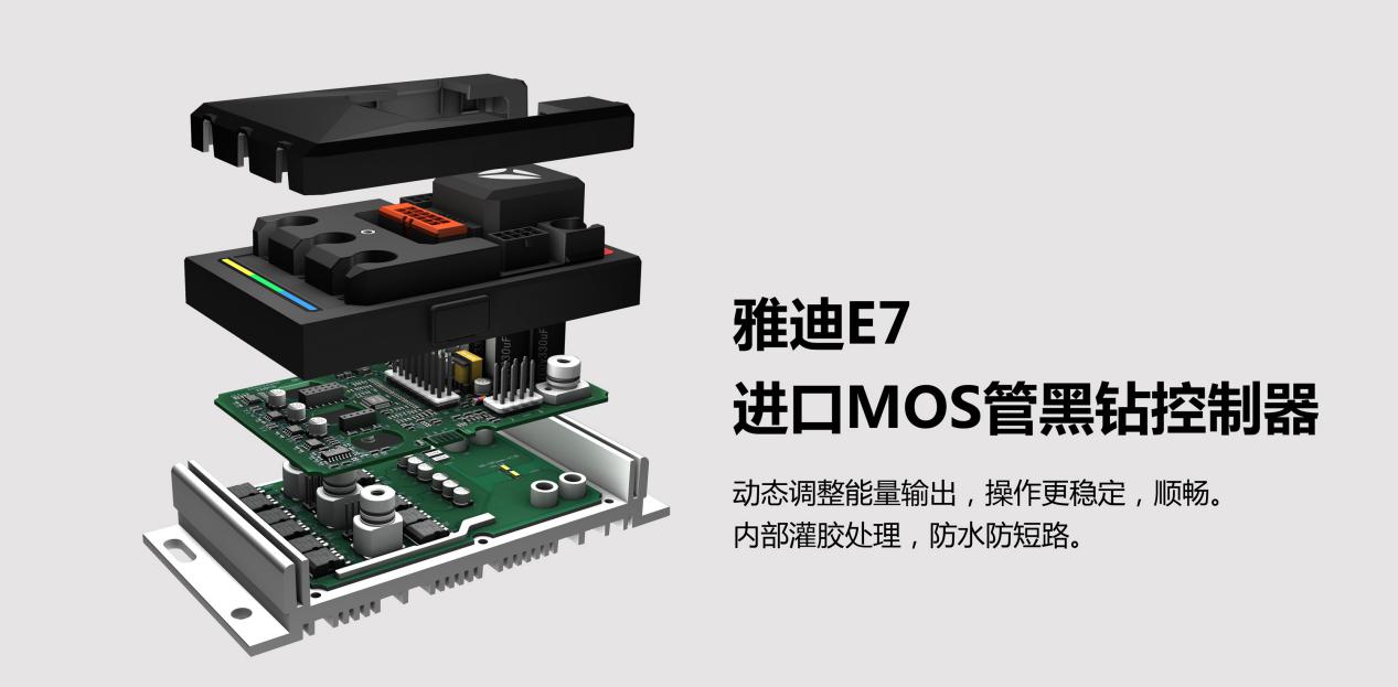 性能方面,雅迪E7的控制系统采用进口MOS管黑钻控制器,操作更稳定、更顺畅。日本AVSS汽车级低压主线,线束更牢固,系统更安全。同时,全车共进行了 37项核心部件的品质提升,使得整车稳定率高达99.7%,远行无忧,再也不用担心电动车半路抛锚、淋雨短路的尴尬了。