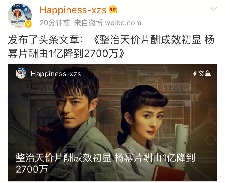 范冰冰被调查事件结果尚未公布,但是在微博上高呼要严惩范冰冰的不在少数,今日#杨幂片酬1亿降到2700万#登上热搜,不少网友齐声吐槽,但杨幂今年的《谈判官》片酬尚在3000万左右,且1亿片酬根本没有准确信源。