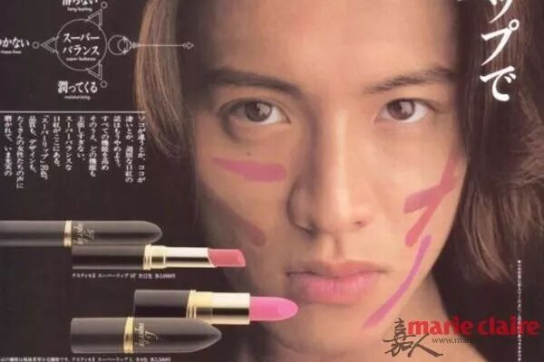 男明星代言美妆的案例,其实在很早之前便出现了。早在1996年,亚洲红极一时的巨星木村拓哉便代言了KANEBO的TESTIMO II口红,木村拓哉作为第一个为口红代言的男明星,在当时轰动了整个广告界。启用木村拓哉代言之后,该款口红不仅卖到脱销,创造了两个月卖出了300万支的纪录,连大街小巷的海报都被粉丝洗劫一空,而当时日本化妆品界一年卖出50万支口红都已经算是畅销了。