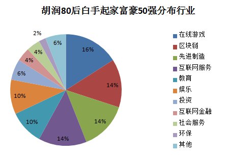 从行业来看,80 后富豪主要来自在线游戏、区块链、先进制造业、互联网服务、教育和娱乐等新经济领域。