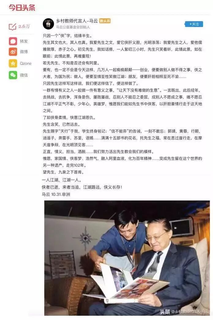 为什么张一鸣、马云、张纪中等大咖都在悼念金庸?