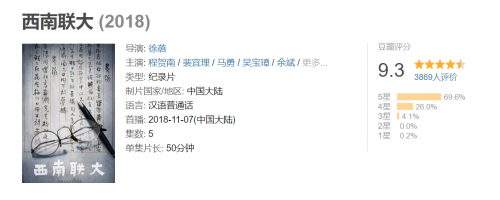 近期,央视热播的纪录片《西南联大》彻底火了。豆瓣评分9.3,腾讯视频平台上的评分更是达到9.5,创造了今年历史类纪录片的最好播出成绩。