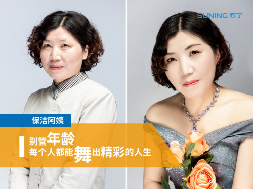 苏宁食堂的厨师大姐和保洁阿姨也分别“变身”为职场霸道女精英和贵妇,演绎成熟女性魅力。