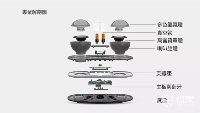 此次发布的创新真空管音响,经过美国团队电声的计算,运用了特殊的波纹设计,能够使喇叭的弹性更好,震动幅度更大。不仅是高音的提升,在低音的优化上,经由独家 IESP 系统的调校,当隔膜产生声波时,无源辐射器的低锥可以产生更强的线性振动,强化低音感受。