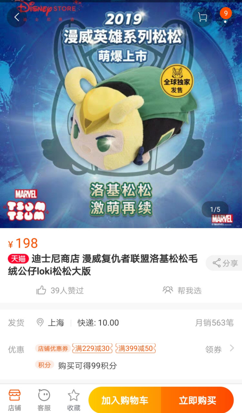 对比而言,在迪士尼的天猫官方旗舰店上,单个公仔类周边大概售价在 200 元左右,比如 " 洛基松松 " 公仔大版(30x26x52cm)的售价为 198 元,漫威钢铁侠蓝牙音箱售价为 399 元,价格能达到 600 元以上的漫威周边仅有一款美国队长创意手表和复仇者联盟拉杆箱。