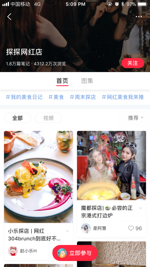 除了直接搜索之外,在#带你去逛网红店#、#探探网红店#、#这个地方超适合拍照#等和线下相关的热门话题中,不少博主都在笔记中加入了地理位置标签,用户可直接查看该位置的POI详情页。