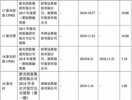 同一天,发行金额为 10 亿元的短期融资券 "17 新光控股 CP001" 也将到期,但上清所仅收到部分本金及全额利息资金。构成实质性违约。