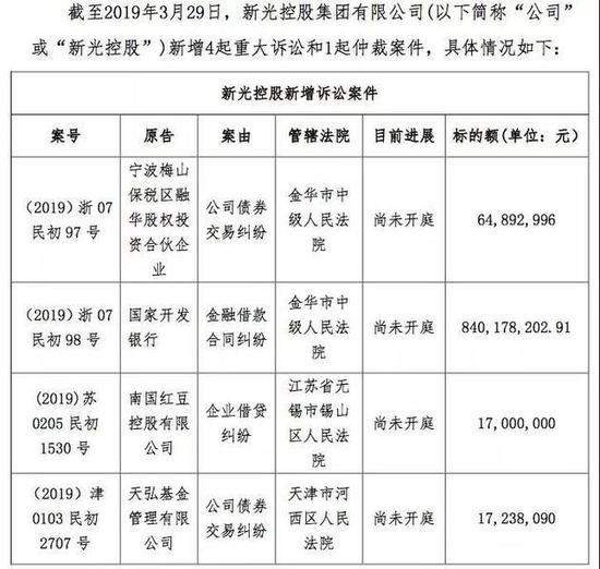 公司负债累累无法偿还,周晓光自己也被法院列为了 " 老赖 "。同时,新光集团还面临着多起诉讼和仲裁案件。