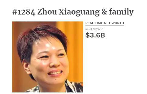 2017 年,周晓光夫妻以 330 亿元的身家排名胡润百富榜第 65 位;2018 年 3 月,周晓光在 " 胡润全球白手起家女富豪榜 " 上排第 26 名,成为浙江女首富。