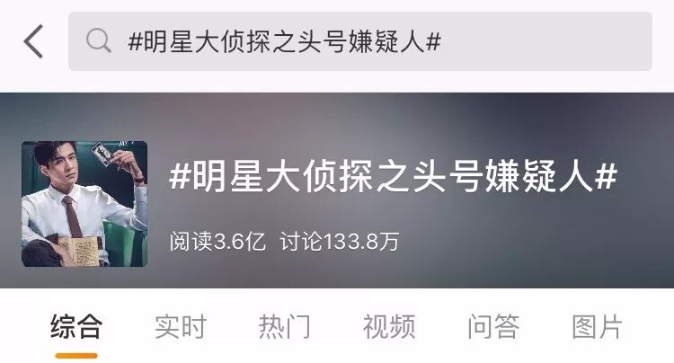 1月18日,《明星大侦探之头号嫌疑人》以互动微剧的形式上线。在乔振宇、王鸥、黄明昊等明星光环加持下,微博上话题阅读量达到3.6亿,讨论133.8万。