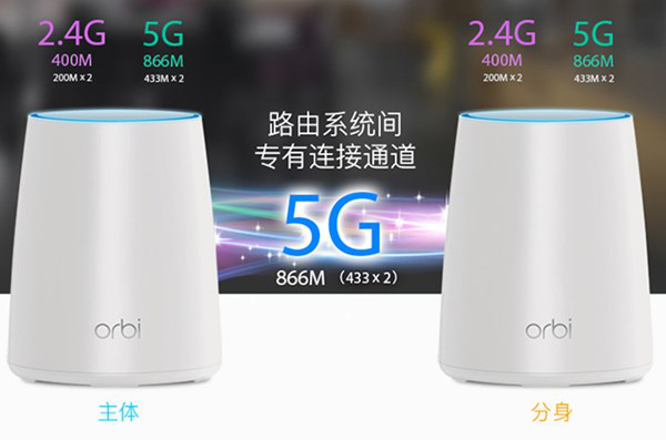 奥秘 Orbi 是网件的子品牌,最早做 Mesh 路由器的厂商之一,口碑一直非常好。产品分主副路由器,会预留出一半的 5GHz 带宽 / 速率用以路由器间通信,也就是所谓的 " 三频路由器 "。