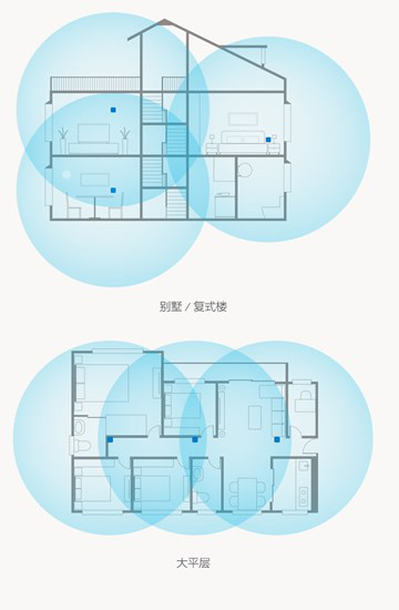 由于可以实现无缝漫游,同一 Mesh 网络下所有节点的所有信号,可以看做同一 WiFi 信号,其覆盖范围也就是所有节点信号范围的并集。