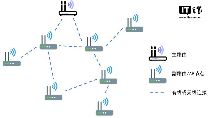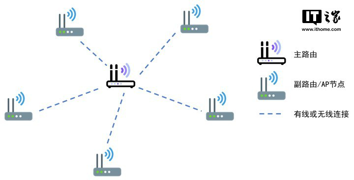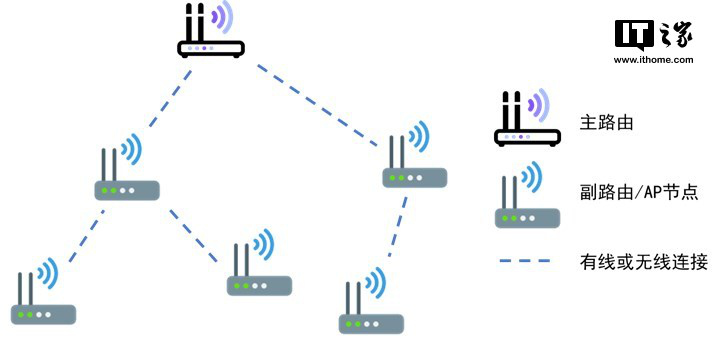 "Mesh 网络 " 中文可称为 " 网状网络 " 或 " 多跳网络 ",Mesh 路由器产品也被称作分布式路由器。顾名思义,这是一种采用网状拓扑结构的网络,早期产品一般由主路由和子路由 / 副路由组成,或主路由和中继路由 / 节点(Point/Node)组成,近期也有一些不分主副路由的产品出现。