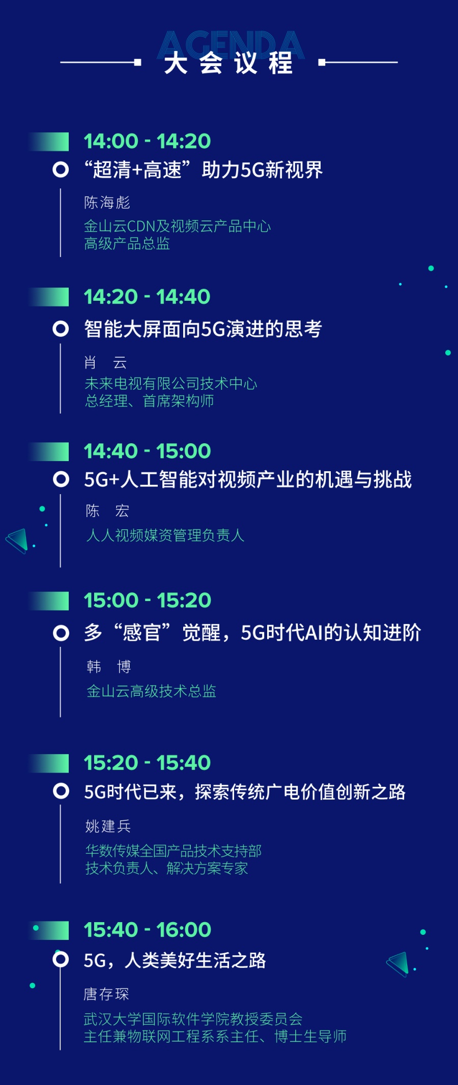 5G会给通信行业带来巨大的变革,网络高速化、视频高清化将会随着5G商用落地步入千家万户。金山云CDN及视频云产品中心高级产品总监陈海彪将发表《“超清+高速”助力5G新视界》主题演讲,金山云将会深入剖析5G的行业趋势,并针对性提供金山云解决方案,助力客户打造5G新视界。
