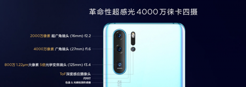 华为P30 Pro采用超感光4000万徕卡四摄设计,分别为4000万像素的主摄、2000万超广角、800万光学变焦和ToF深度感应四颗摄像头。其中,彻底改变手机弱光拍照体验的就是那颗4000万像素的主摄像头。
