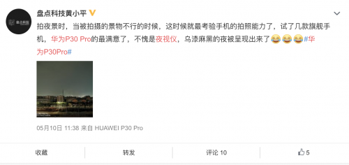 值得一提的是,针对手机普遍糟糕的弱光拍照体验,值得一提的是,在华为P30 Pro上,华为将手机弱光拍照的性能推至巅峰,被很多用户和专业媒体称之为“夜视仪”。