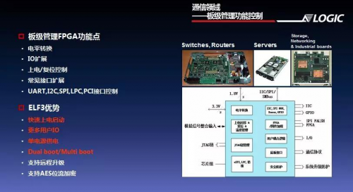 郭喜林重点提到了ELF3的优势,包括单电源供电、电路简洁、占用PCB面积小;上电快速启动,可控制系统的上电、复位等顺序等;具有2个PLL,16路全局时钟,典型工作频率为100~200MHz,可实现更高逻辑性能;64位DNA,支持位流AES加密;双启动和多启动功能可支持安全可靠的远程升级。