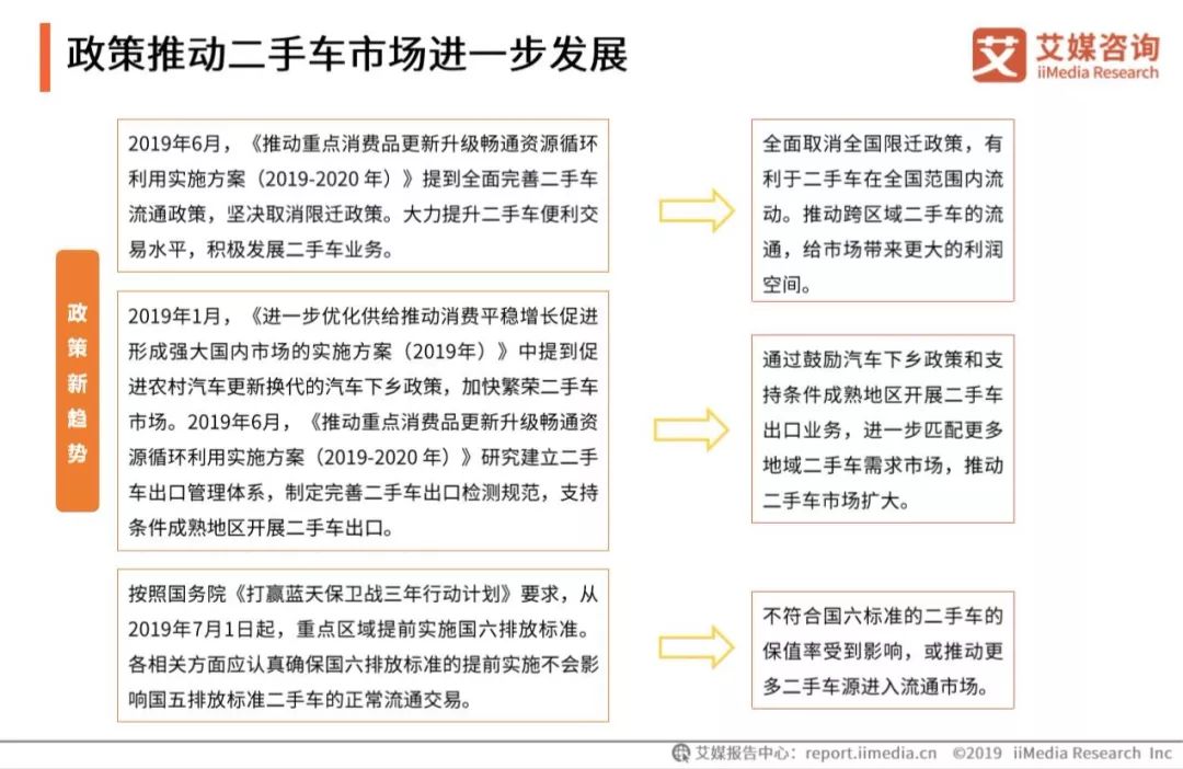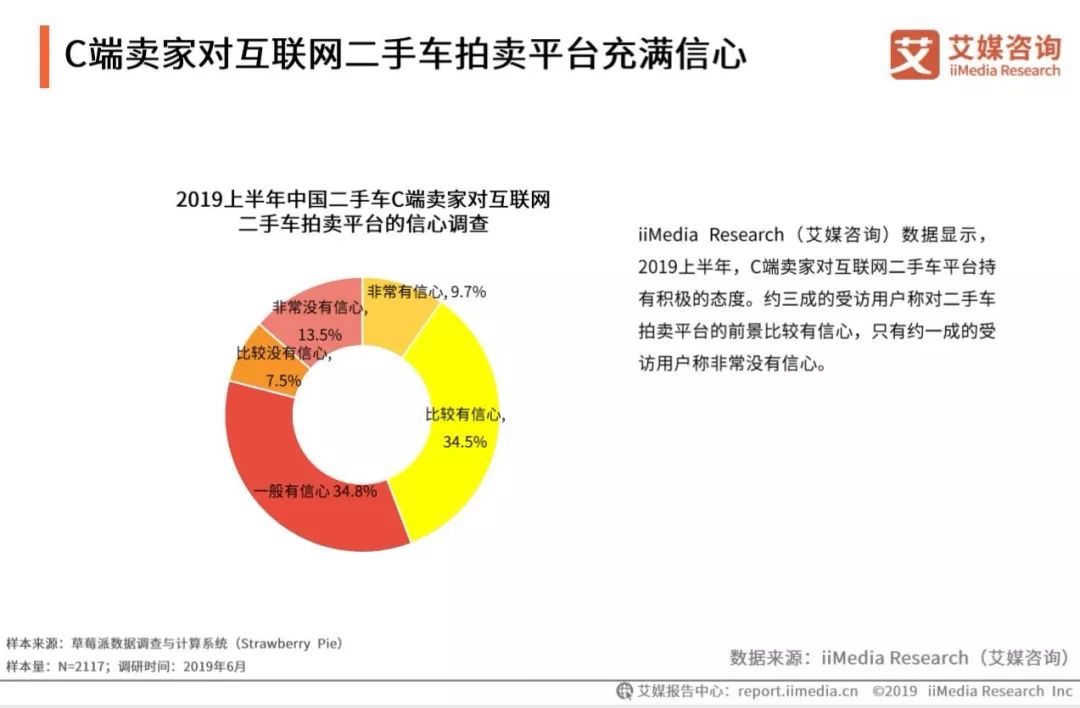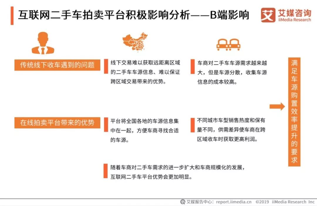 近日,艾媒咨询发布《2019上半年中国互联网二手车拍卖平台研究报告》,从市场、用户、趋势等多维度剖析二手车行业发展,主要观点如下: