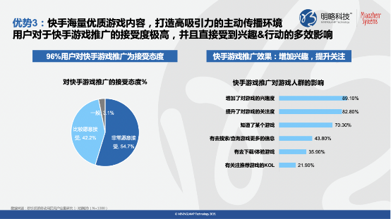 96%快手用户接受游戏推广行为,游戏玩家呈现高黏性