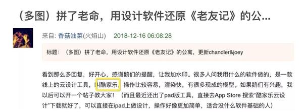 事实上,原贴当初发布就收到了“连篇累牍”的网友实名制佩服,创作者在回答是用什么软件做的效果图时,指出正是来自杭州一家准独角兽——酷家乐公司的云设计工具。