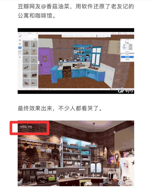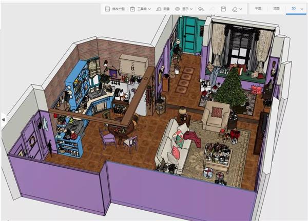 文章中引起众多热议的,是网友@香菇油菜,用设计软件还原出了《老友记》剧中的公寓和咖啡馆。细看空间效果图,还原度几乎达到了百分之99.99%。