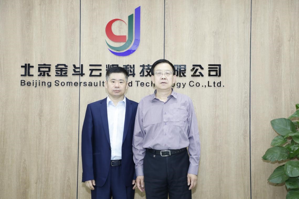 中共中央党校国际战略研究所副所长、北京科技大学博士生导师、经济学博士周天勇教授于考察金斗云公司时与金斗云辉董事长齐洪庆先生合影留念