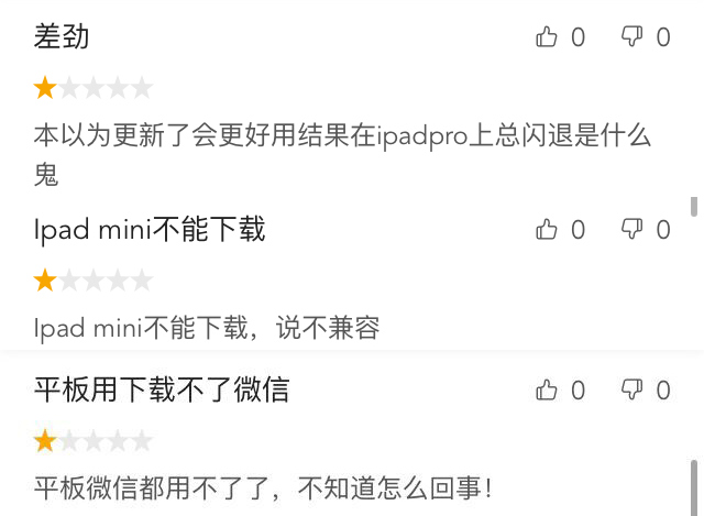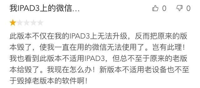 App Store 里刷屏的另一个大问题,是最新版微信对设备不够兼容。