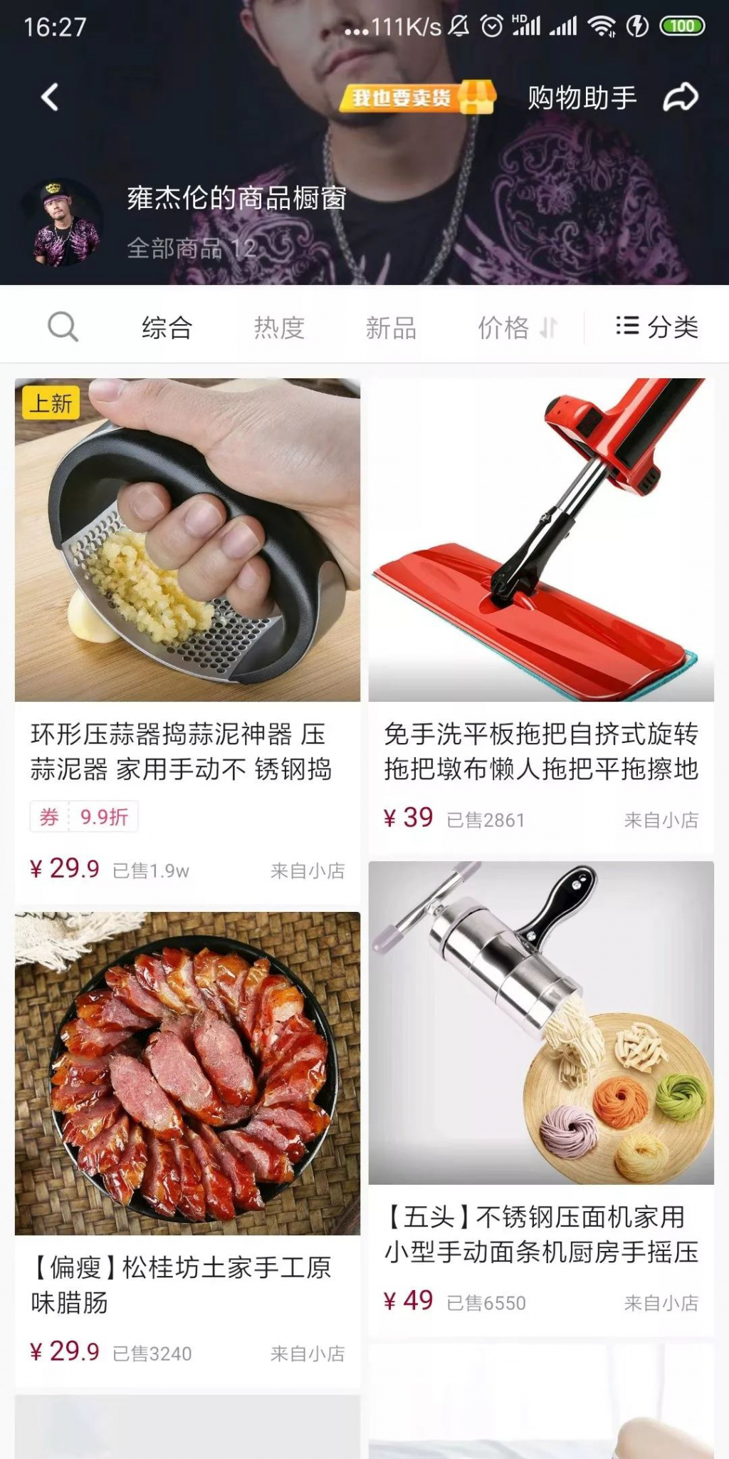 从 " 雍杰伦 " 的商品橱窗我们可以发现,他还接了不少广告推广,其中不乏销量上万的爆款。