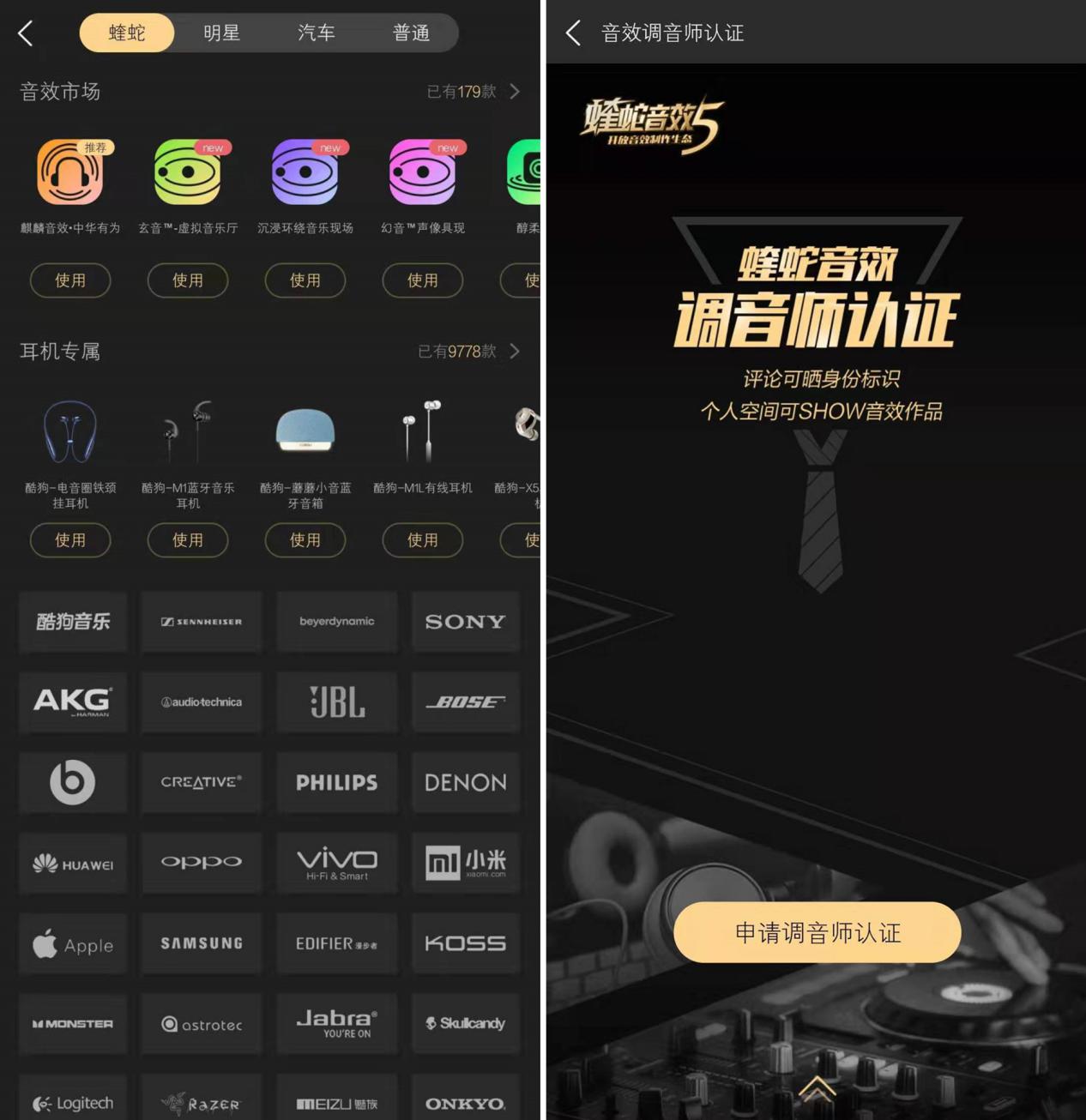 让人称道的是,酷狗不仅内部升级技术,还对用户共享了自己的技术。在5.0版本蝰蛇音效更新后,官方开放了音效制作生态,专门面向大众提供完整的音效制作工具及教程,平台内增设调音师认证渠道,协助普通用户自行创作新音效,发力打造特色音效社区。