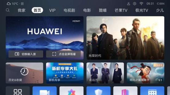 华为智慧屏产品中,华为视频首次将优酷酷喵、芒果TV、腾讯极光TV三大重量级的合作伙伴“同框”,每个用户都可以看到海量的网络视频节目,以更加广阔的视角看遍全“视”界。