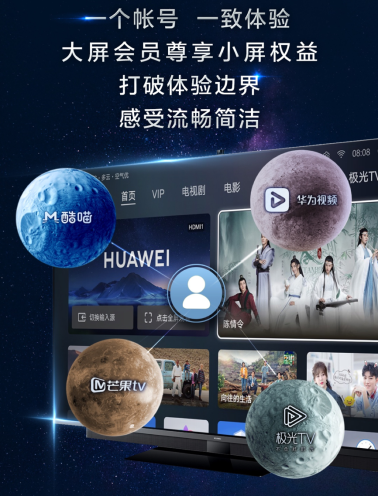 得益于华为视频与合作伙伴共筑的视听生态,华为智慧屏通过技术方面的升级整合,在国内首次实现了通过一个帐号“遍览”三大平台的海量优质内容,实现了“陪你看遍全视界”的初心。