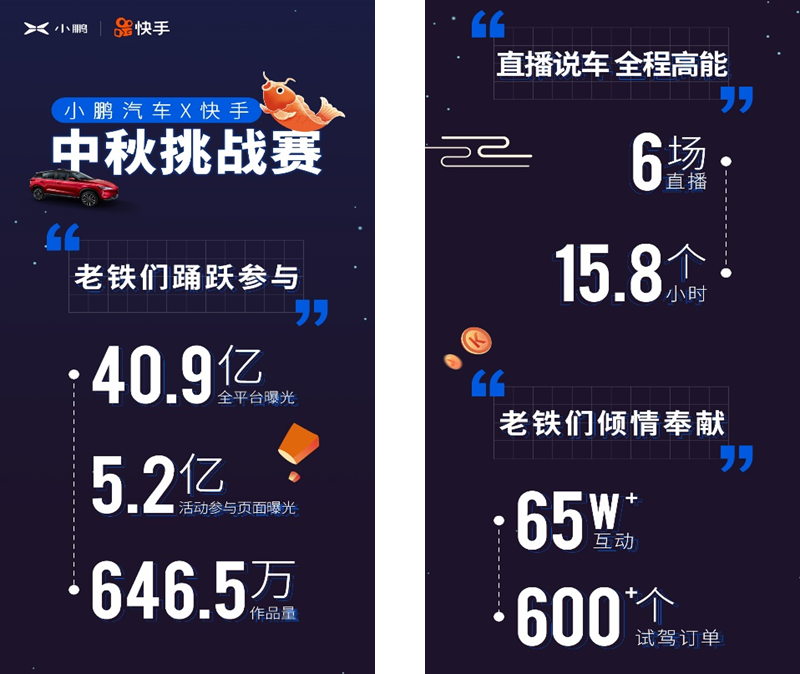 仅仅一周,小鹏汽车就对“快手社区活动”以及短视频直播电商的影响力有了新的认知,没想到活动参与量、曝光量如此巨大,而且短视频直播的效果震撼了不少人。