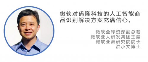 微软全球资深副总裁、微软亚太研发集团主席兼微软亚洲研究院院长洪小文博士表示:“微软十分欢迎码隆科技成为微软的‘金牌合作伙伴’。一直以来,码隆科技都致力于为客户提供最精尖的技术和最优质的客户服务。微软对码隆科技的人工智能商品识别解决方案充满信心。”洪小文博士也是码隆技术咨询委员会(TAB, Technical Advisory Board)的成员。