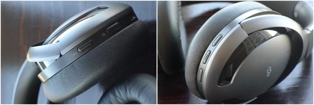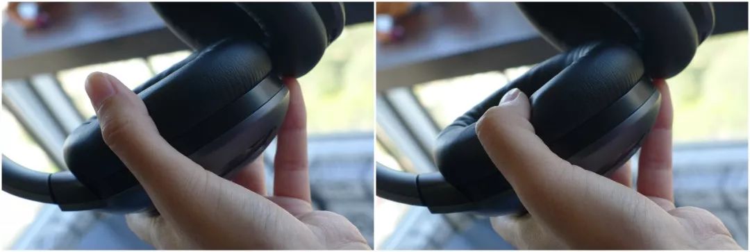 放在手上环视一周,发现耳机的按键在用户手方便触及到的耳机后方。耳机的左后方有开关机和ANC按键(有两个档位,强或者弱),耳机右后方是音量加减键和切歌或者接电话的按键。