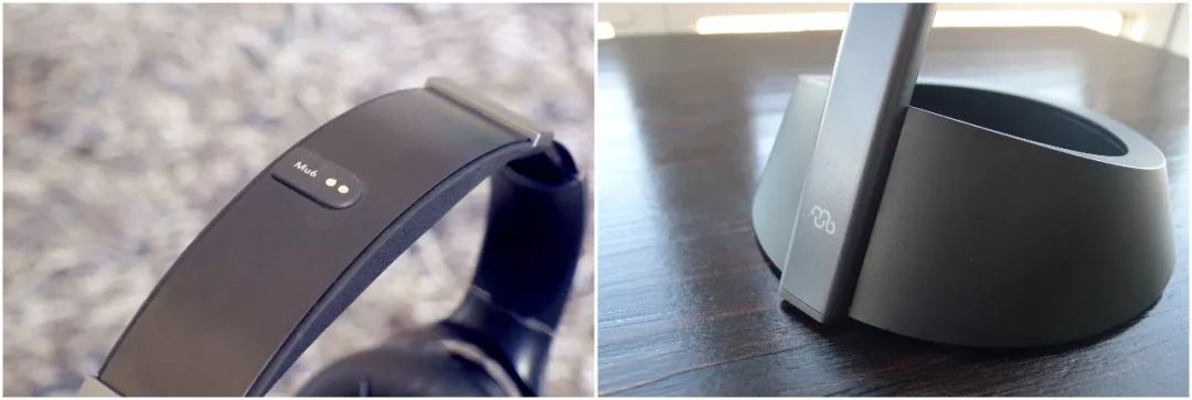 Mu6标配一只造型别致金属的耳机架,质感精致,整体做了切边处理,丝毫没有划手的感觉。