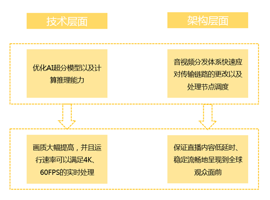 客观而言,直播画质是个综合性问题,会受原图质量,计算能力,编码参数,用户带宽等因素影响。超分技术可以提高原图质量,但也要配合其他技术综合一起,才可以达到最优效果。如本次的4K高清,除使用AI进行视频图像处理外,虎牙还应用了大型音视频直播分发系统,对视频实时加工的处理支撑技术等。