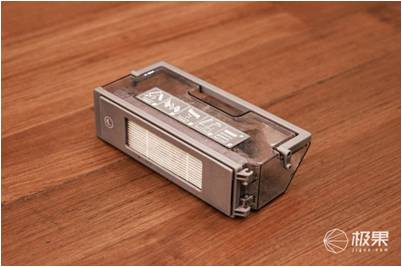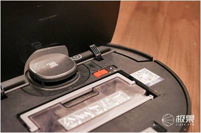接下来我们来看看尘盒跑去了哪里,掀开顶部的盖板,就可以看到啦。盖板的打开处还有一个很贴心的设计,做了一个小凹槽,手指轻松就可以打开。尘盒采用透明的材质,里面垃圾多少一目了然,而且可以水洗,倒完垃圾直接在水下面一冲就干净啦,特别方便。