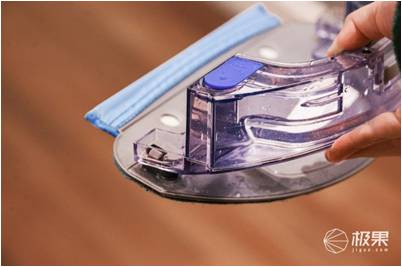 拖地抹布通过魔术贴固定在水箱下面,拆取方便,清洁完后之后只需要揭下来清洗晾干即可。