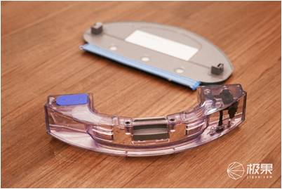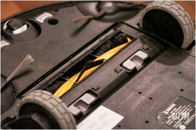 从底部看,我们可以明显的看到。较一般的扫地机器人,DEEBOT T5吸尘口的位置多了一个浮动滚刷。