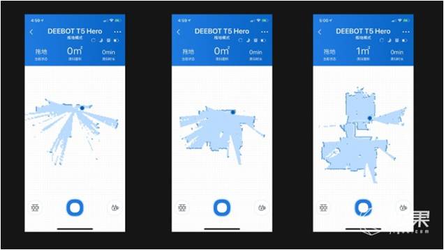 最终我们可以看到科沃斯 DEEBOT T5 Hero智能扫地机器人花了60分钟把整个环境清扫干净,工作结束后它还会提示清扫已完成,自动返回充电座。